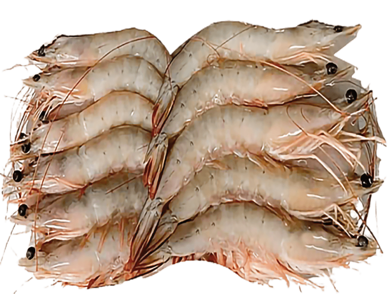 Often called Banana Shrimp/Chaka. White shrimp has a sweet, mild flavor, low to medium oiliness and moist flesh with a medium texture. Flesh is translucent when raw and white with pinkish bands when cooked.